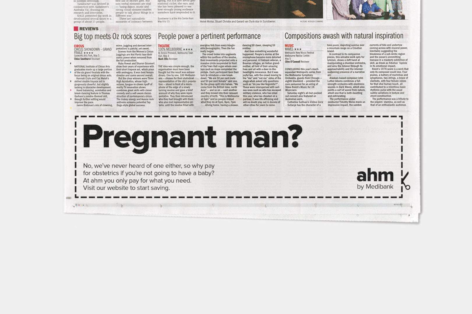 AHM is a health insurance company owned by Medibank. Previously a small niche player, the brand was repositioned to focus on the low-cost end of the market, targeting consumers searching for value for money.